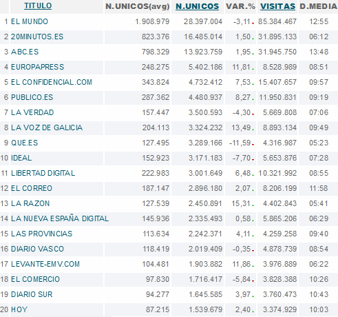 DATOS DE OJD DIGITAL DE JULIO 2012 CORRESPONDIENTES A LA CATEGORÍA NOTICIAS GLOBALES Y ACTUALIDAD