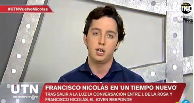 Casi tres meses hacía que el ‘pequeño Nicolás’ no pisaba un plató de televisión, y ayer volvió a uno de sus favoritos. ‘Un tiempo nuevo’ volvió a invitar al siempre polémico Francisco Nicolás para que aclarase su responsabilidad ante la filtración de una conversación telefónica entre él y el empresario catalán Javier de la Rosa.