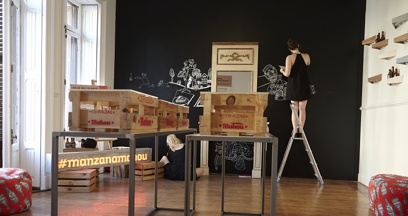 Espacios como Manzana Mahou 330, en colaboración con El Viajero, representan el compromiso de la marca con la cultura y el ocio innovador de Madrid a través de sus barrios. Entre las diferentes propuestas, los alumnos del IED realizarán un mapa con tiza del ocio del barrio de Malasaña, a través de una visión cercana e inclusiva, esencia que caracteriza a Malasaña desde que fue el centro de la movida madrileña hasta convertirse en el barrio tendencia de la capital, uniendo tradición y modernidad. Las recreaciones de los alumnos se podrán visionar en directo, ya que se irán creando de forma conjunta.