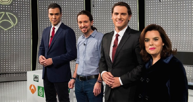 El programa empezó, como los de la Champions dos horas antes, con conexiones desde los coches, desde el maquillaje, peluquería… Al final, aparecen todos, los cuatro, da igual que Rajoy se quedase recolectando pepinos, los cuatro… Esperábamos, yo al menos, otra fórmula que permitiese el enfrentamiento entre las dos ideologías representadas: dos viejas escuelas y dos nuevas, dos de izquierdas y dos de derechas… Y se daban de palos entre ellos, entre los cercanos, por un voto que tienen ganado… ¿A qué jugaban?