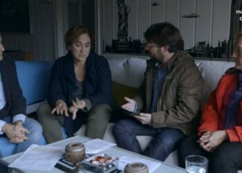 En el sillón de Elisa Pizarro, afectada por la pobreza energética, se han sentado este domingo Ada Colau, Miguel Sebastián ...