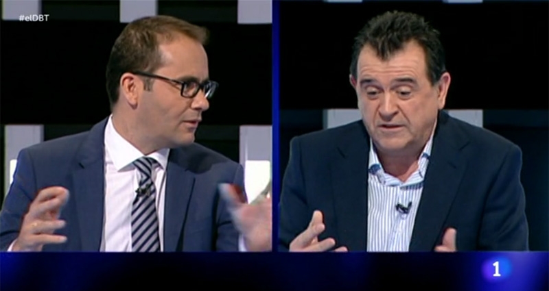 Lo mismo ocurrió en la noche de ayer en El debate de La 1 presentado por Julio Somoano. El exdirector de los Servicios Informativos de TVE reunió en el plató a algunos de los más importantes representantes de los medios de comunicación para realizar un análisis de la campaña electoral. Para ello contó con David Jiménez, Bieito Rubido, Arsenio Escolar (director de 20 Minutos), Enric Juliana (director adjunto de La Vanguardia, delegación Madrid), José Luis Pérez (director de Informativos de Cadena COPE), y Jesús Rivasés (director de Tiempo).