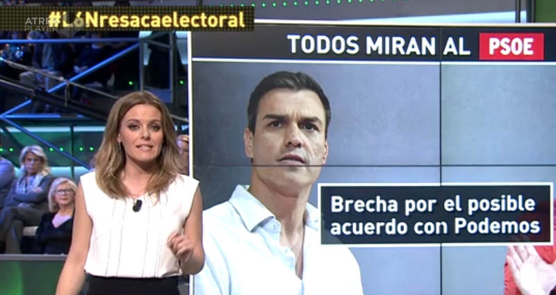 Mientras que Eduardo Inda, Director de Ok Diario afirmaba “si España es ingobernable prefiero que haya nuevas elecciones”, Francisco Marhuenda recalcaba “si no hay gobierno nos podemos ir al carajo”. La entrevistada en la Sexta noche Mónica Oltra, Vicepresidenta de la Generalidad Valenciana, asegura que es bueno que haya acuerdos y tomar la experiencia de otros territorios, “se ha acabado el tiempo del rodillo y llega el tiempo de escuchar y de transigir, hay que bajarse del ego” sentenciaba. A partir del lunes se podrá observar hacia dónde se dirige este nuevo panorama político y si Mariano Rajoy será capaz de formar gobierno.