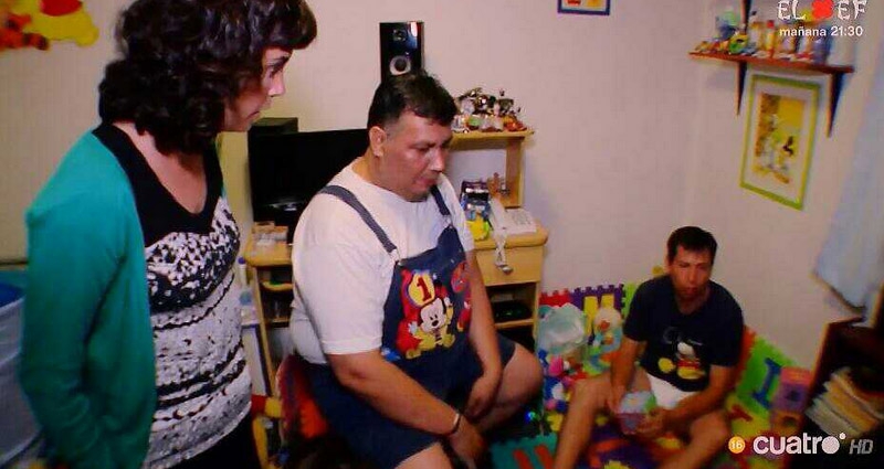 La reportera llegó a probar por curiosidad lo que se experimenta al llevar un pañal saliendo a la calle y montando en bicleta con el puesto. Comparaba su tacto con las compresas y se sorprendía por lo cómodos que resultaban. Samanta Villar además observó como era la rutina de estos “bebés adultos” en sus casas y la relación que mantienen con sus familiares y cuidadores.