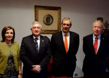 El rector de la Universidad de Santiago (USC), Juan Viaño, y el director general de Sanofi Genzyme, Francisco J. Vivar, ...