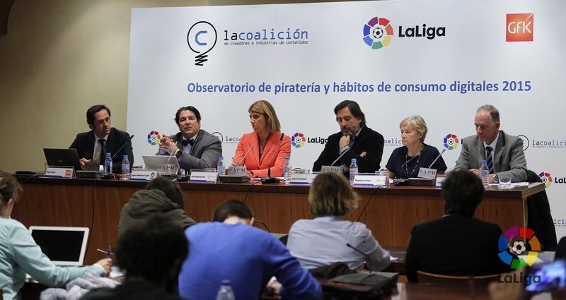 Las conclusiones son las mismas desde hace una década, pero las soluciones no terminan de llegar. El lastre de la piratería no cesa en España, aunque sí ralentiza su avance en términos globales. Pese a ello, el 87,48% de los contenidos digitales consumidos el pasado año en nuestro país fue ilegal y sólo el 36% de los accesos fueron legales, según ha certificado el Observatorio de la piratería y hábitos de consumo de contenidos digitales 2015 elaborado por la consultora GfK por petición de la Coalición de creadores e industrias de contenidos y la Liga de Fútbol Profesional (LFP).