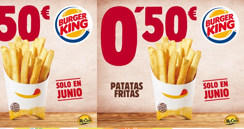 BURGER KING® acaba de presentar su nuevo lanzamiento promocional: sus famosas patatas clásicas a 50 céntimos. De este modo, la compañía refuerza su apuesta por el snacking, una tendencia creciente en el mercado español, y satisface las necesidades de sus diferentes consumidores. Esta promoción, que estará vigente durante todo el mes de junio, ha sido comunicada a través de soportes tradicionales, tales como televisión, redes sociales y exterior. Sin embargo y para darle aún más fuerza, la marca ha desarrollado una llamativa campaña de Street marketing en las entradas y salidas de dos de las estaciones de metro más importantes de Madrid: Callao y Gran Vía. Dos puntos neurálgicos tanto para los madrileños como para los turistas que vienen a visitar la ciudad y que reciben, al cabo del día, la visita de miles de transeúntes, ya sea para ir a trabajar, ir de compras, ver un musical, ir al cine, o simplemente para dar una vuelta y tomar algo en uno de los múltiples restaurantes de la mítica vía madrileña.