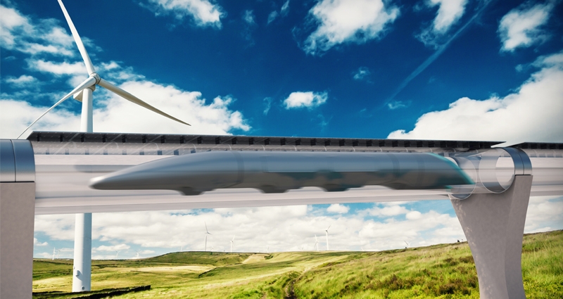 Hyperloop es un sistema de transporte de alta velocidad que emplea aire comprimido para transportar por un tubo desde un punto a otro un tren que cuenta con diseño de bala y podría superar los 1100 km/h. El sistema no requiere de rieles y fue planteado como piloto por su creador para construir el primer tubo entre Los Ángeles y San Francisco, prometiendo un viaje que no excedería de los 35 minutos y tendría un costo de inversión de 6 mil millones de dólares.