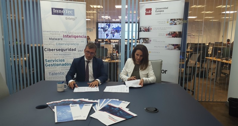 InnoTec ha firmado un acuerdo de colaboración con la Universidad Europea para fomentar el conocimiento en materia de ciberseguridad y favorecer la realización de prácticas en la empresa a los alumnos de la institución educativa. Las oficinas del grupo Entelgy en Madrid han sido el escenario elegido para sellar el acuerdo de colaboración entre ambas organizaciones, firmado por Félix Muñoz, director general de InnoTec y Marta Muñiz Ferrer, decana de la Facultad de Sociales y Comunicación de la Universidad Europea.