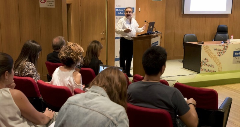 Fernando Bandrés Moya, catedrático y profesor de la Universidad Complutense de Madrid, ha destacado que la incorporación de estos nuevos conceptos de la Medicina Personalizada de Precisión a la formación universitaria constituye una innovación educativa de primera magnitud. “Este tipo de cursos, de carácter multidisciplinar, incorporan conceptos novedosos, de las nuevas tecnologías y sus aplicaciones clínicas. Y la clave del éxito ha sido la asistencia masiva de alumnos al curso”, ha afirmado. De hecho, las inscripciones al curso tuvieron que cerrarse con una semana de antelación una vez cubiertas las más de 150 plazas de alumnos.