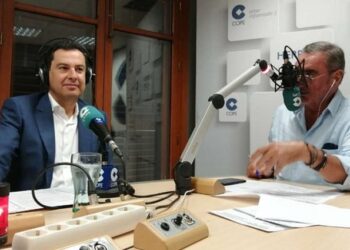 El presidente de la Junta de Andalucía, Juan Manuel Moreno Bonilla, se ha acercado al estudio de Carlos Herrera para ...