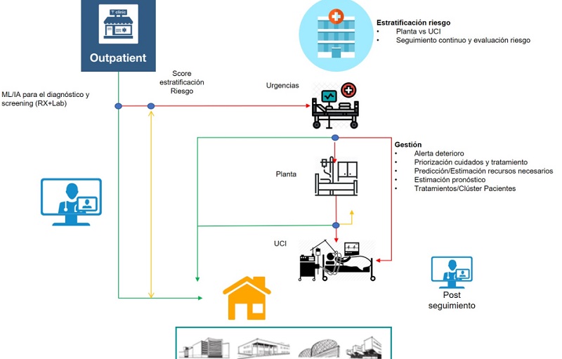 El algoritmo, en cuyo desarrollo e implementación están implicados los servicios más involucrados en la lucha contra la Covid-19 -Medicina Interna, Neumología, UCI y UCIR (Unidad de Cuidados Intermedios Respiratorios)- de esta red asistencial, además de su Departamento de Big Data, comenzó a implementarse en Urgencias el pasado septiembre, para ampliarse a Hospitalización, UCI y UCIR a mediados de diciembre.