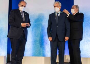 El presidente de Honor de A.M.A. y presidente de su Fundación, Dr. Diego Murillo, y el presidente de la mutua, ...