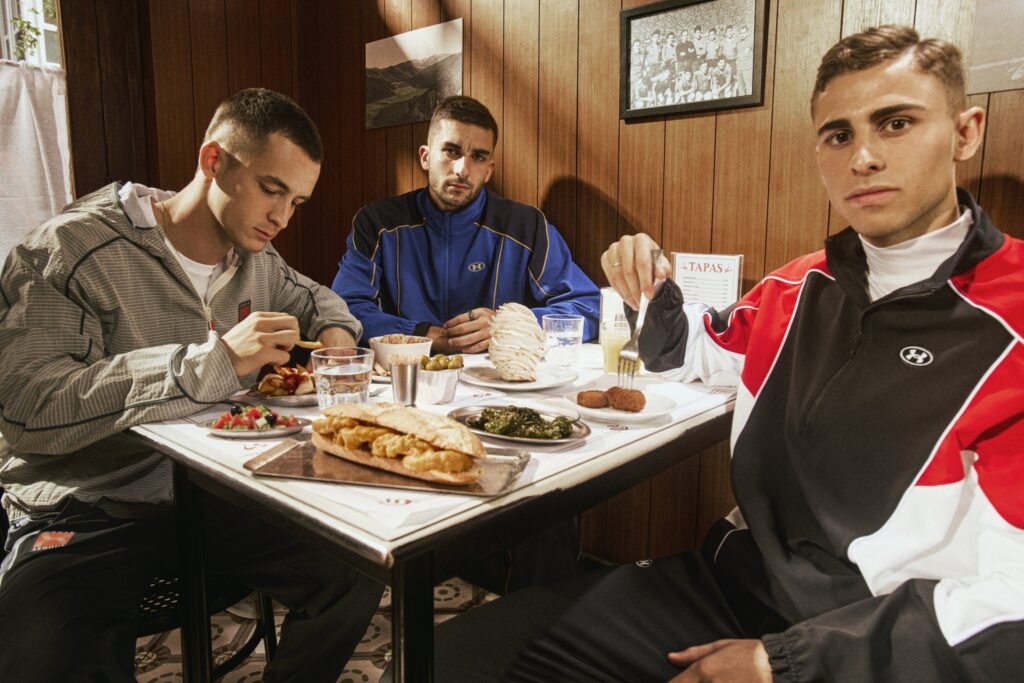 La campaña, bajo el nombre “Comerse al rival”, juega con la expresión popular que refleja perfectamente el espíritu competitivo del equipo azulgrana. En ella, vemos a los tres futbolistas en una bodega tradicional del centro de Barcelona mientras saborean simbólicamente platos típicos madrileños como el bocata de calamares o los merengues — en estos últimos se puede ver como también hacen un guiño al apodo de su adversario.