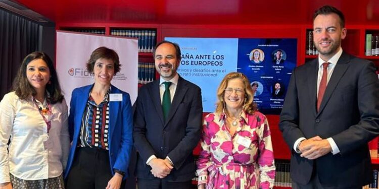 La sesión congregó a profesionales del ámbito diplomático, institucional, jurídico y empresarial con presencia en Bruselas, para analizar los principales retos que afronta España en el nuevo contexto europeo. El acto fue inaugurado por Cristina Jiménez Savurido, presidenta de Fide, y Carlos Parry Lafont, presidente de APRI, quienes destacaron la importancia de consolidar espacios de diálogo entre profesionales e instituciones tanto en Madrid como en Bruselas, promoviendo una reflexión compartida y rigurosa sobre las transformaciones que está viviendo la Unión Europea.
