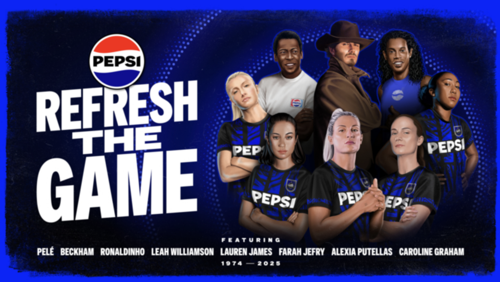Pepsi® reúne a grandes figuras del fútbol de distintas generaciones, clubes y países en una nueva campaña global repleta de jugadores y jugadoras. ‘Refresca el Juego’ presenta a los iconos del fútbol actual unidos con leyendas del pasado, mientras rememoran los momentos futbolísticos más memorables de Pepsi de los últimos 50 años.