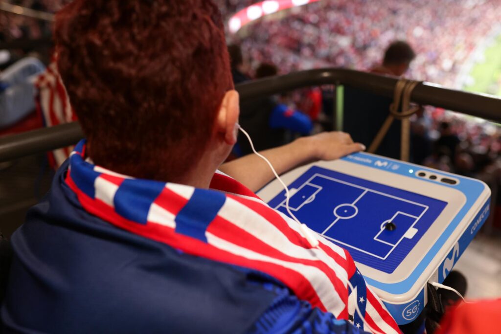 Telefónica y Atlético de Madrid han desarrollado un proyecto piloto para los aficionados con discapacidad visual a través de su departamento de innovación Atleti Lab. Esta experiencia, que ya fue ofrecida a un grupo de aficionados en el trascurso de un partido reciente de LaLiga, permitirá completar su experiencia de partido en el Riyadh Air Metropolitano con una tablet háptica y la narración audiodescriptiva del encuentro.