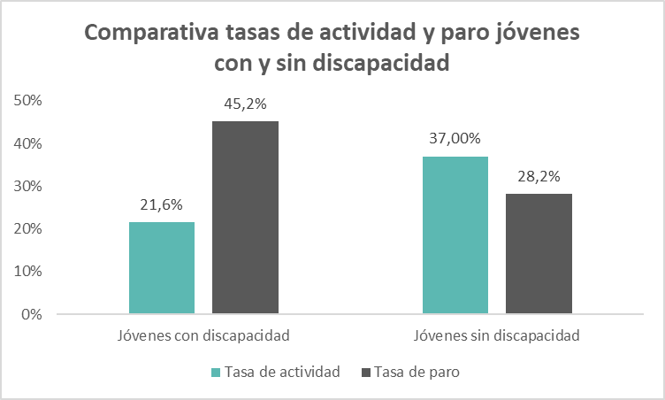 La tasa de paro de los jóvenes con discapacidad alcanza el 45,2%, frente al 28,2% de los jóvenes sin discapacidad de la misma franja de edad