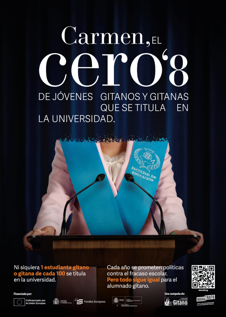 Para Carmen Jiménez, joven gitana protagonista de la campaña: ¨Haber conseguido graduarme y representar a ese menos de un 1 % de jóvenes gitanos que lo consigue representa no solo un logro personal, sino también un símbolo de esperanza y necesidad de compromiso por parte de las instituciones. Es imprescindible implementar políticas reales, apoyo constante y un cambio profundo que haga de la educación una herramienta de inclusión y respeto para todos. ¨