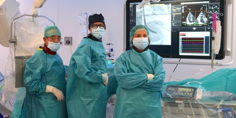 Según el cardiólogo Luis Nombela, “desde la ingle, donde el equipo hace una pequeña incisión de dos puntos en la piel, puncionamos la vena femoral y su gran tamaño nos permite introducir y subir hasta el corazón derecho, donde está la válvula tricúspide, un catéter de un centímetro de diámetro, aproximadamente”.