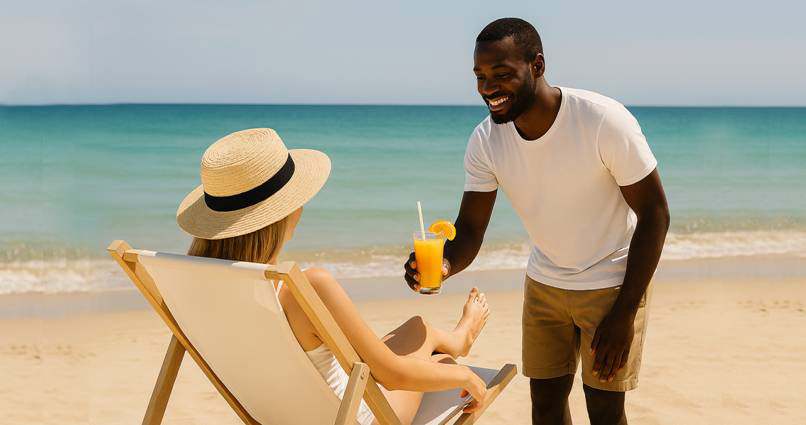 Tras la semana en París y ya en el chiringuito de Puente Romano, ella fijó su mirada en un simpático cupido encargado del alquiler de las hamacas. El marroquí, que era bien parecido, también centró sus intenciones en los pechos operados de la dama. Quiso Fortuna que, por responsabilidades de trabajo, Fernando tuviera que tomar un tren de vuelta a Madrid y ella se viera obligada a pasar más tiempo al aire libre, estrechar su círculo social y encender la chispa de la infidelidad para disfrutar del sexo.