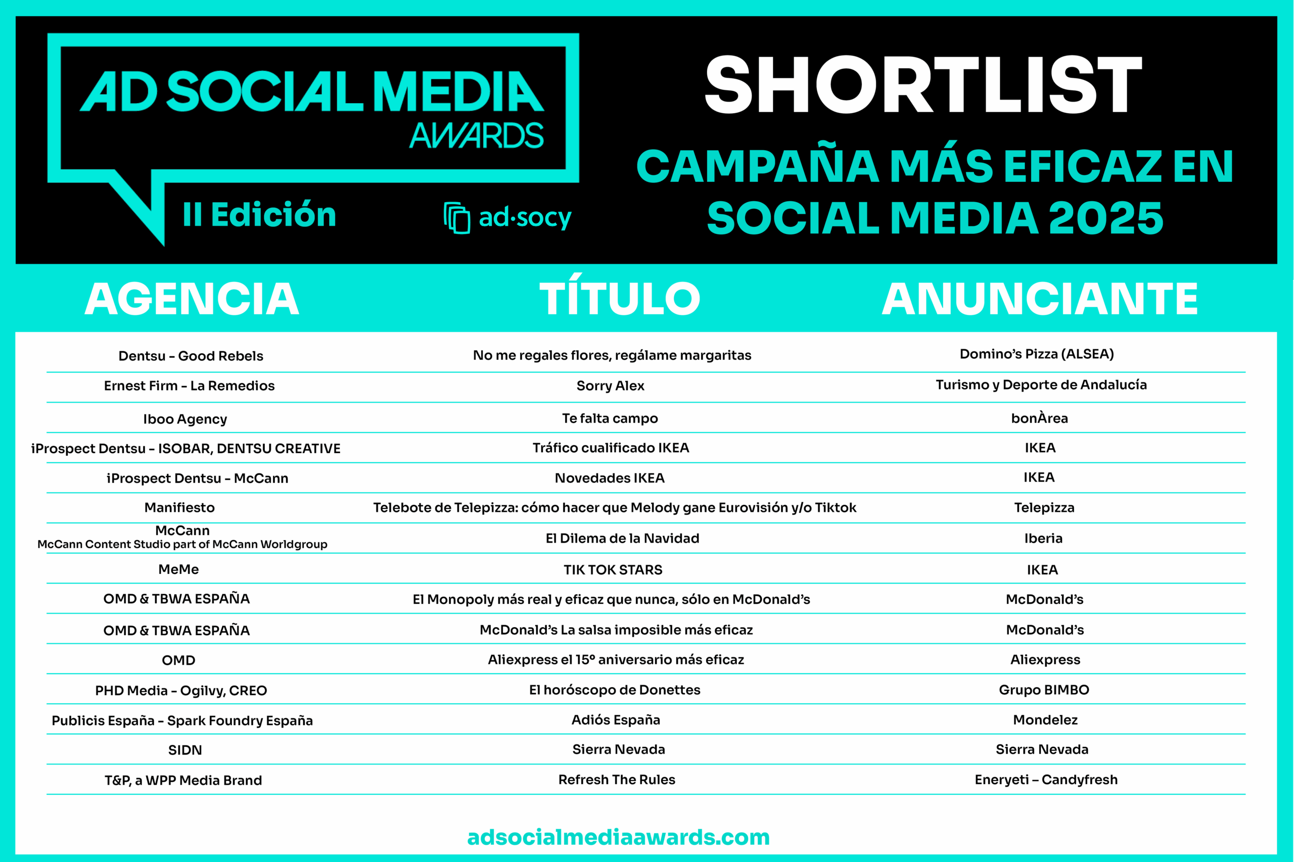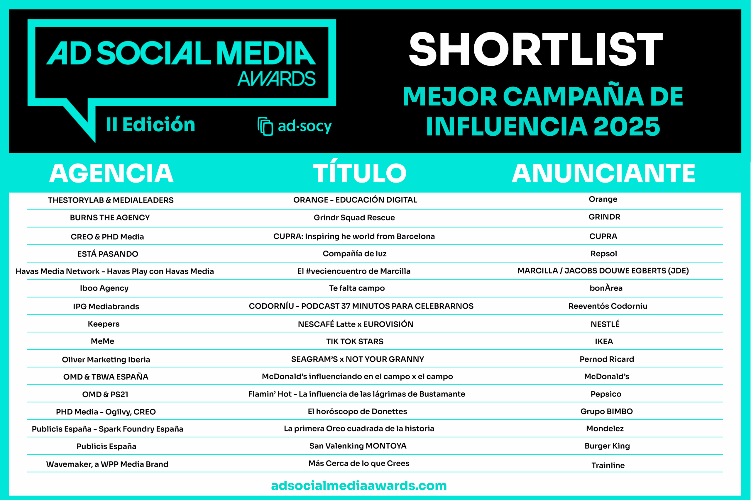 Los Ad Social Media Awards vuelven este año tras un éxito rotundo en su primera edición en 2024. Estos premios reconocen el talento y la genialidad que hay detrás de la publicidad en redes sociales, galardonando a las mentes brillantes de las agencias creativas, agencias de medios, anunciantes, medios de comunicación y creadores de contenido que hacen publicidad a través de social media.
