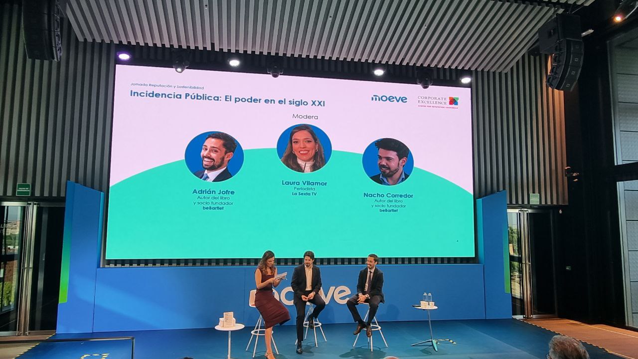 La primera mesa redonda, moderada por la periodista Laura Vilamor, contó con la participación de Adrián Jofre Bosch y Nacho Corredor, socios fundadores de beBartlet y autores del libro Incidencia Pública: El poder en el siglo XXI.