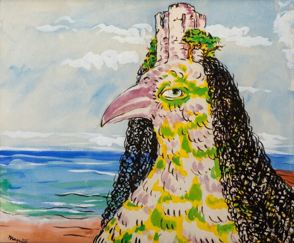 Virginie Devillez Fine Art: René Magritte (Lessines, 1898 – Bruselas, 1967), Le Prince charmant, 1948. Gouache sobre papel, 37 x 46 cm. Firmado en el ángulo inferior izquierdo “Magritte”