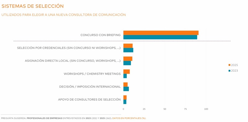 A la hora de elegir, las empresas confían sobre todo en la reputación y los resultados tangibles. El trabajo previo realizado por la consultora (75%) es la herramienta más utilizada para tomar decisiones, seguida de la recomendación (70%) y de la experiencia personal del responsable de comunicación (63%). Los aspectos más determinantes en el proceso de selección apuntan a la calidad humana y estratégica del socio: el equipo de profesionales, su credibilidad y capacidad de relación con los medios, y la planificación estratégica de comunicación.