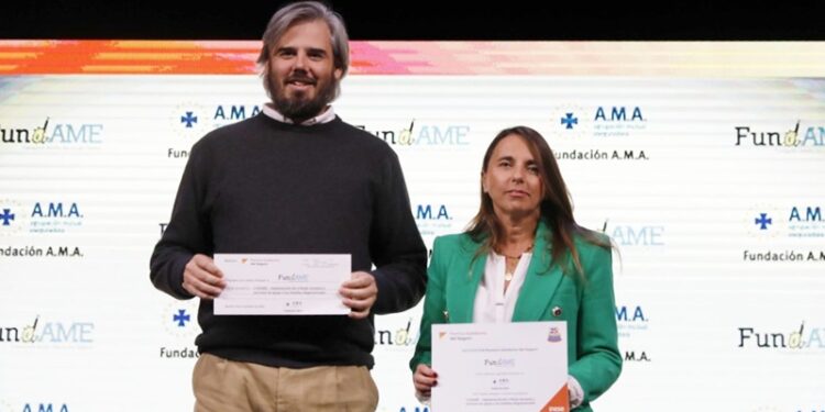 La Fundación A.M.A. ha premiado a la Fundación Atrofia Muscular Espinal (FundAME) por su proyecto CribAME: Implantación del cribado neonatal y servicios de apoyo a las familias diagnosticadas en el marco de los Premios Solidarios del Seguro de INESE, que ayer celebró su XXIV edición en un evento que reunió a los principales representantes del sector asegurador. La ayuda fue entregada por Dª Raquel Murillo Solís, vicepresidenta económica de la Fundación A.M.A. y directora general de la mutua.