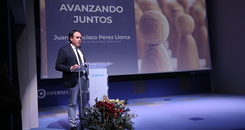 Durante la conferencia Avanzando Juntos, celebrada en el Club Información, Pérez Llorca apostó por el diálogo, el respeto y el trabajo conjunto, y subrayó que el progreso de la Comunitat Valenciana pasa necesariamente por el desarrollo equilibrado de Alicante, Castellón y Valencia.
