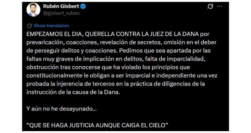 Aquí la querella que ha impuesto Rubén Gisbert contra la jueza y su marido por prevaricación, revelación de secretos, omisión en el deber de perseguir delitos y coacciones: