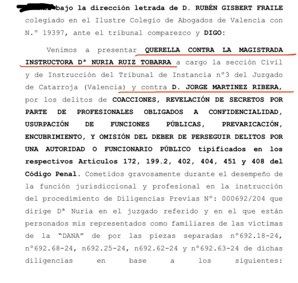 Aquí la querella que ha impuesto Rubén Gisbert contra la jueza y su marido por prevaricación, revelación de secretos, omisión en el deber de perseguir delitos y coacciones: