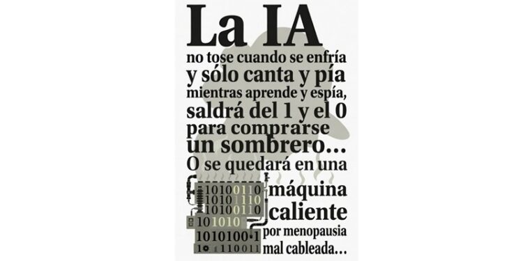 La Ilustración la ha realizado la IA con la siguiente frase: La IA no tose cuando se enfría y sólo canta y pía mientras aprende y espía, saldrá del 1 y el 0 para comprarse un sombrero… O se quedará en una máquina caliente por menopausia mal cableada…