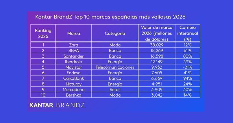 Las marcas de la categoría de banca siguen siendo un pilar fundamental del Top 30 de Kantar BrandZ marcas españolas: en 2026 nueve marcas concentran un tercio del valor total del ranking.