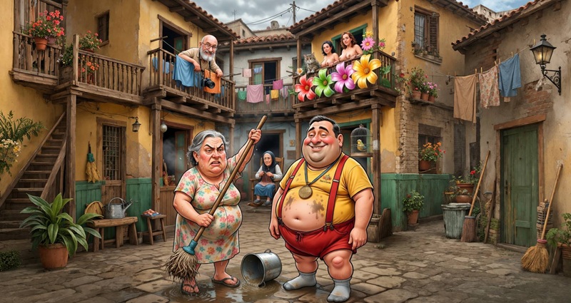 Y en medio de todo esto, las flores de plástico del balcón del tercero siguen brillando, impasibles, como únicas testigos decentes de tanta locura.
