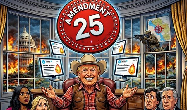 La Enmienda 25, para quien no la tenga fresca, no es un botón rojo que diga “retirar presidente en caso de tuit incómodo”. Es un mecanismo complejo, casi barroco, diseñado para situaciones de incapacidad real: cuando el presidente no puede ejercer sus funciones por razones médicas o cognitivas evidentes. Traducido: no basta con que medio país y el resto del mundo piensen que el mandatario ha perdido el norte; hace falta que su propio gobierno lo admita y que el Congreso lo respalde con una mayoría cualificada a pesar de que es evidente que está como una regadera.