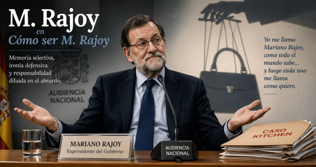 …No llegó al trote cochinero, pero tampoco habría desentonado. La comparecencia de M. Rajoy en la Audiencia Nacional por el caso Kitchen no fue una declaración judicial al uso, sino una autoparodia: una exhibición de desfachatez convertida en estilo político…