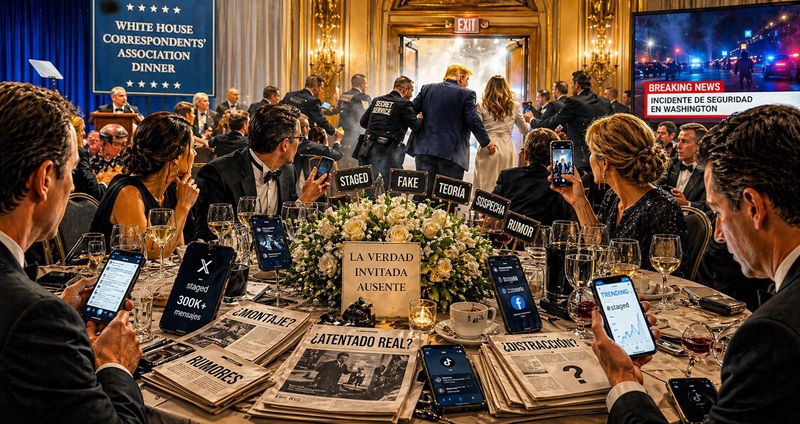 Todo sucedió con la velocidad de nuestro tiempo. Ruidos en el exterior, confusión, movimientos del servicio secreto, salida apresurada de autoridades e invitados. Y casi al mismo tiempo, una avalancha de interpretaciones alternativas en redes sociales. No hubo margen para la digestión informativa. La sospecha nació al mismo tiempo que la noticia.