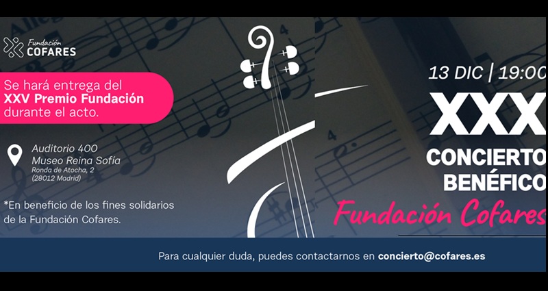 El Auditorio 400 del Museo Reina Sofía acogerá el próximo 13 de diciembre la trigésima edición del Concierto Benéfico de Navidad de la Fundación Cofares,